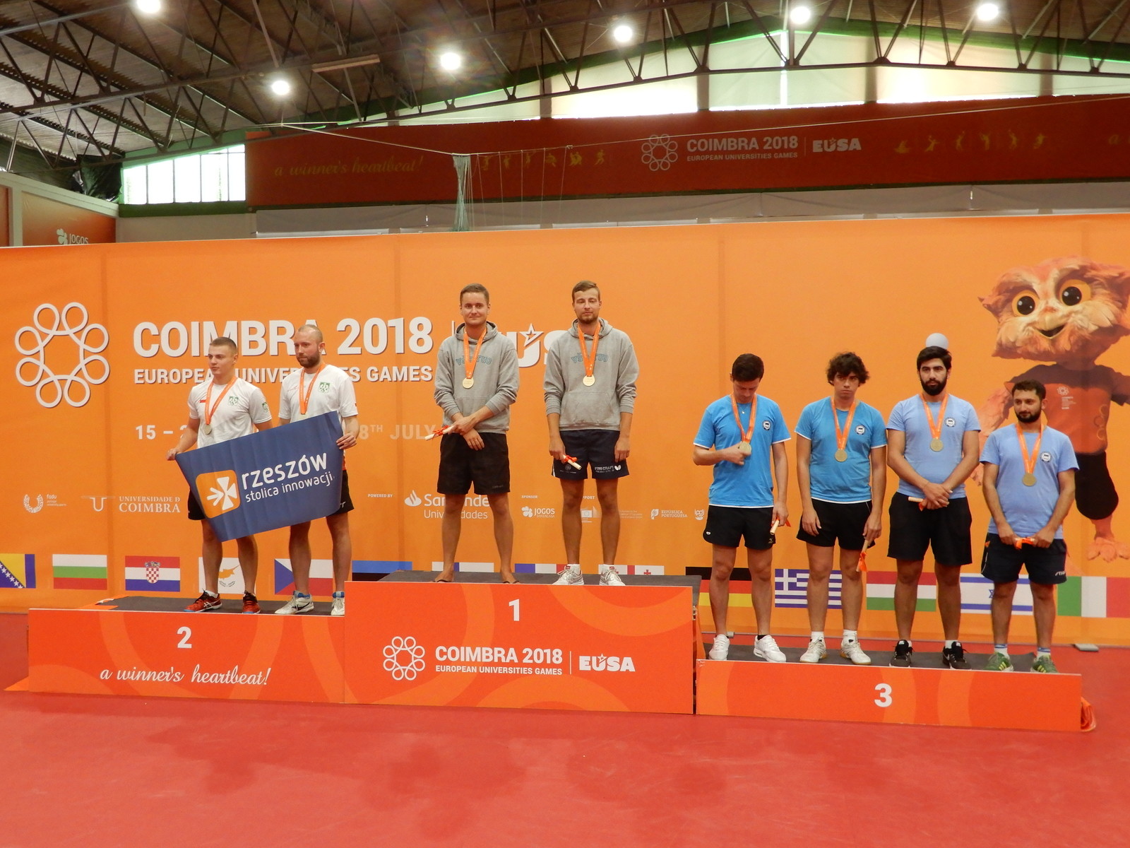 Studenci Politechniki Rzeszowskiej zdobyli trzy medale w tenisie stołowym mężczyzn podczas Europejskich Igrzysk Studenckich w portugalskiej Coimbrze.