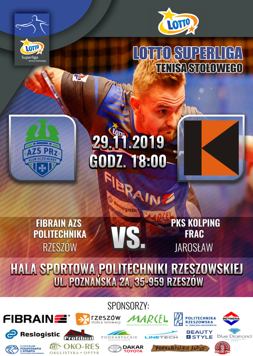 W piątek na hali sportowej Politechniki Rzeszowskiej odbędzie mecz Lotto Superligi Tenisa Stołowego.